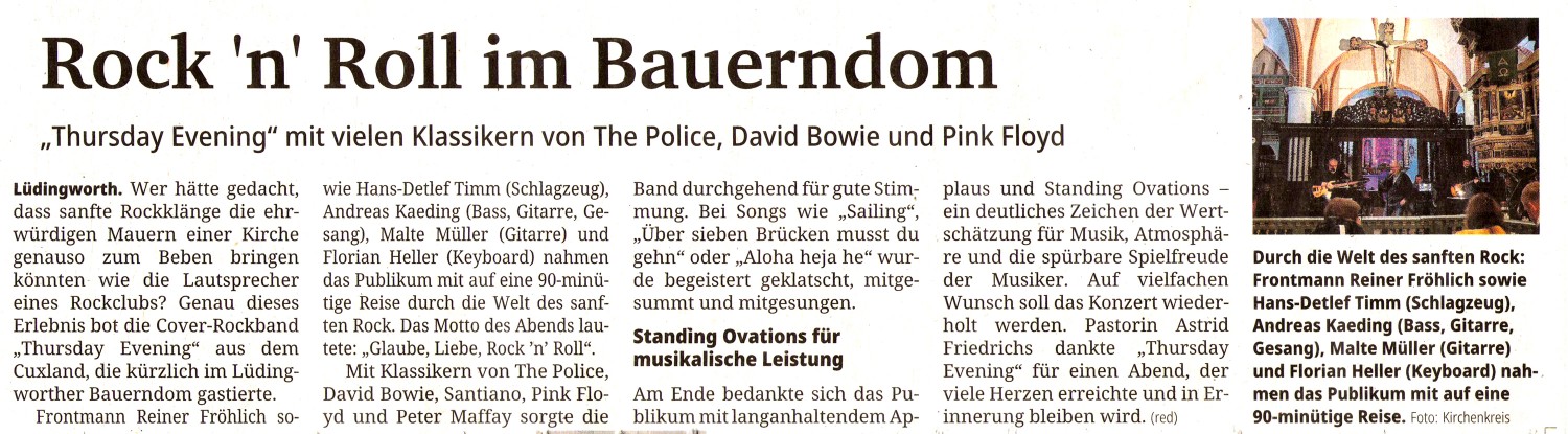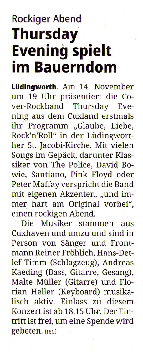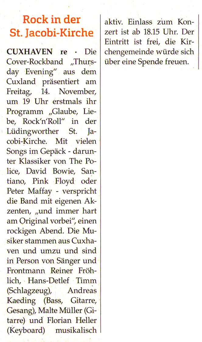Presse - Thursday Evening - Die Rockband aus dem Cuxland